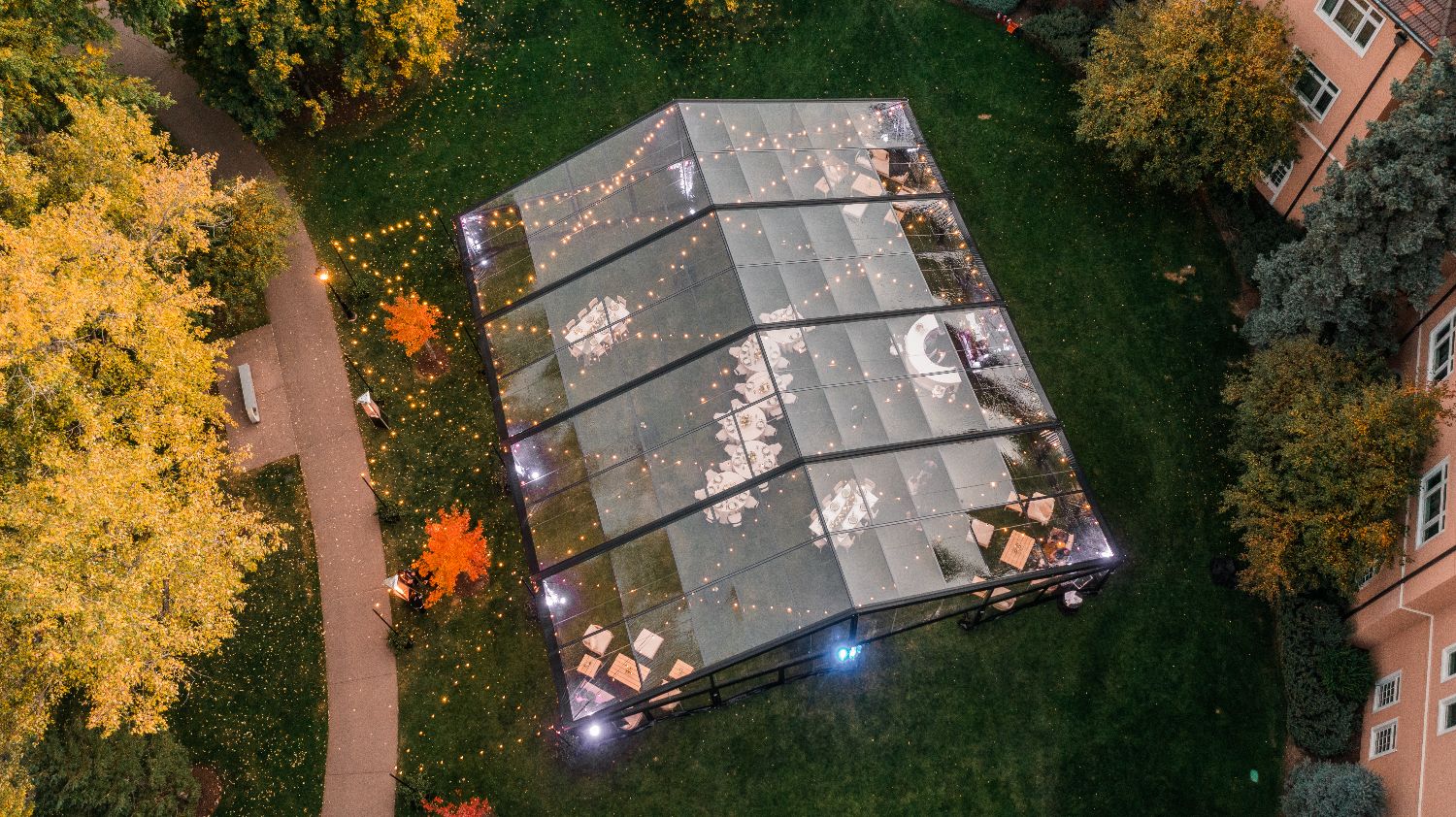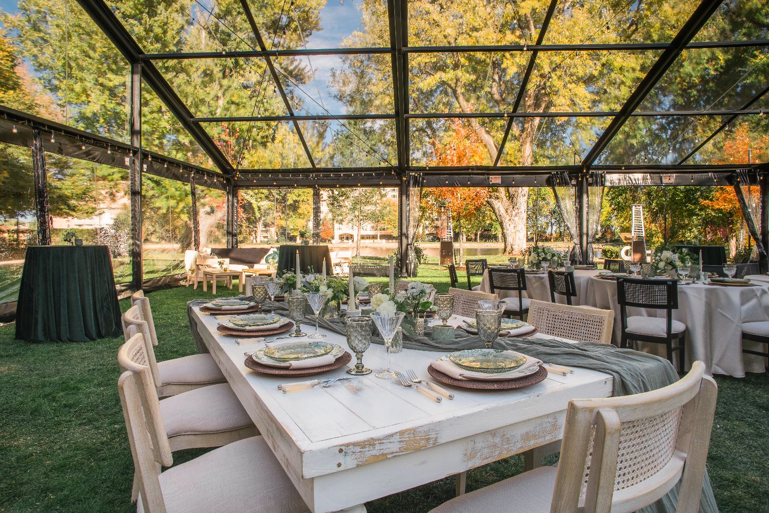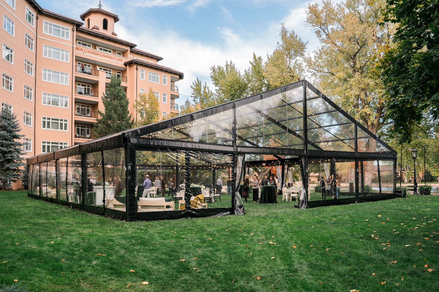 Make a modern statement. A sleek black frame and seamless walls deliver clean lines and dramatic visuals, ideal for photo-ready weddings and polished corporate events. Free of center poles, open and flexible layouts offer an ideal setting from ceremony to reception, gala to product launch.